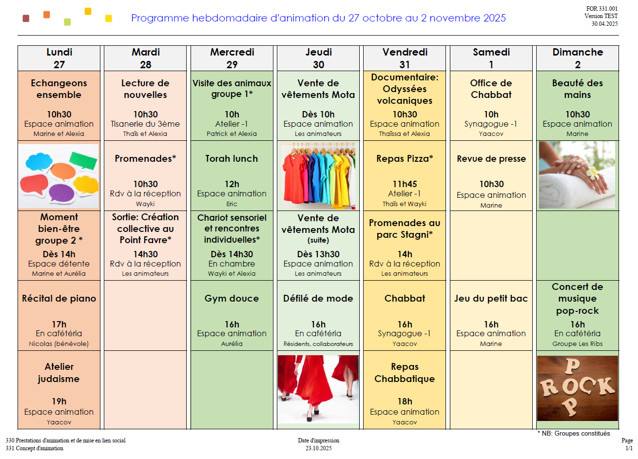 Par le biais d’un programme d’activités collectives et individuelles, adapté aux besoins et aux désirs des Résidants, en lien avec leurs familles et leurs proches, l’animation en EMS contribue à maintenir la continuité identitaire, tout en recherchant la valorisation de la personne, dans le respect de ses droits fondamentaux.