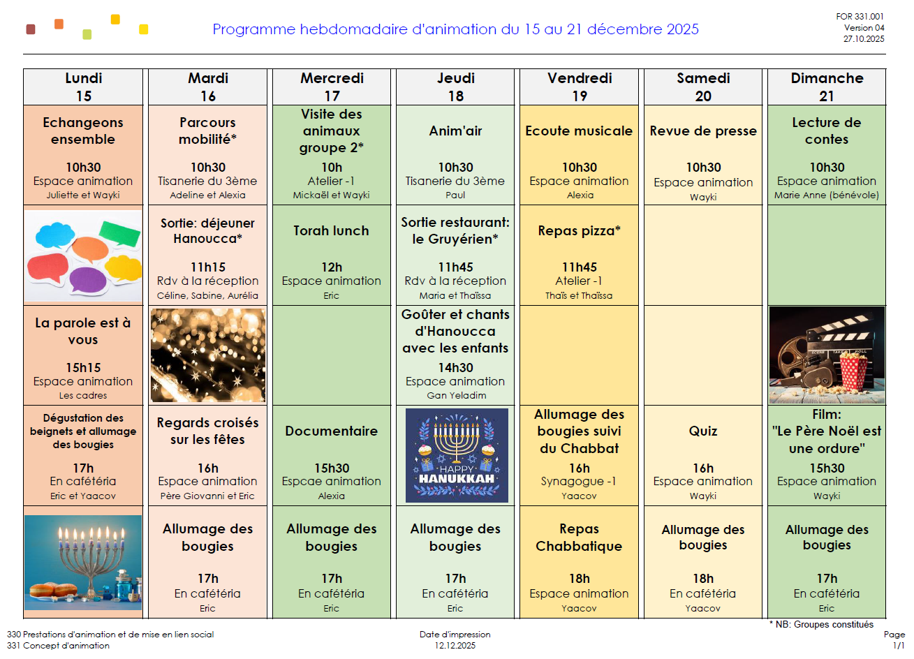 PROGRAMME DES ANIMATIONS